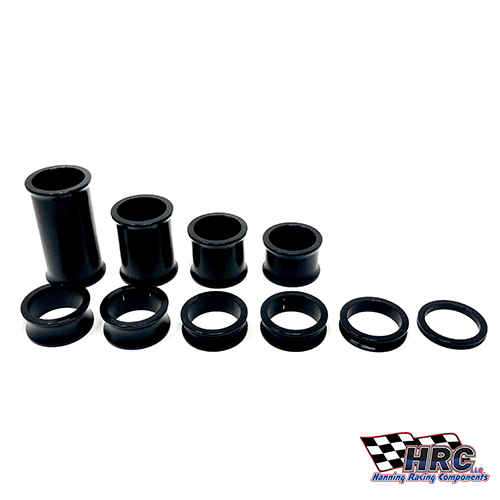 Rear Axle Spacer Kit. Black Anodized (1)4.00″, (1) 2.75″, (1)2.00″, (1)1.50″, (2)1.0 (1).750″, (1).500″